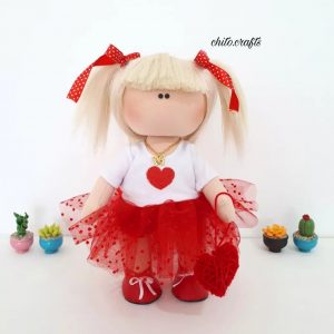عروسک کاملا دستساز متریال استفاده شده کاملا با کیفیت جنس بدن پارچه محکم و ضخیم جنس کفش چرم موی مصنوعی باکیفیت خارجی و قابل شانه کردن قابل ایستایی قد عروسک 28 سانت